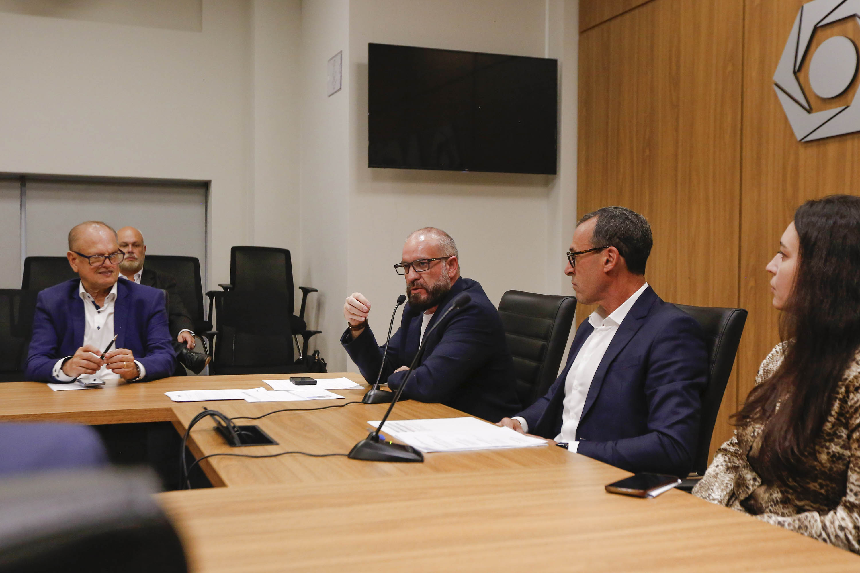 PRESENÇAS – Também compuseram a mesa da audiência pública o diretor de Planejamento e Projetos do Paraná Projetos, Célio Watter; os representantes da FIPE, Malu Cerqueira e Caio Figueiroa; o diretor presidente do Centro de Convenções de Foz do Iguaçu (CECONFI), Gabriel Machado; e o presidente da Associação Comercial e Empresarial de Foz do Iguaçu (ACIFI), Danilo Vendruscolo.
